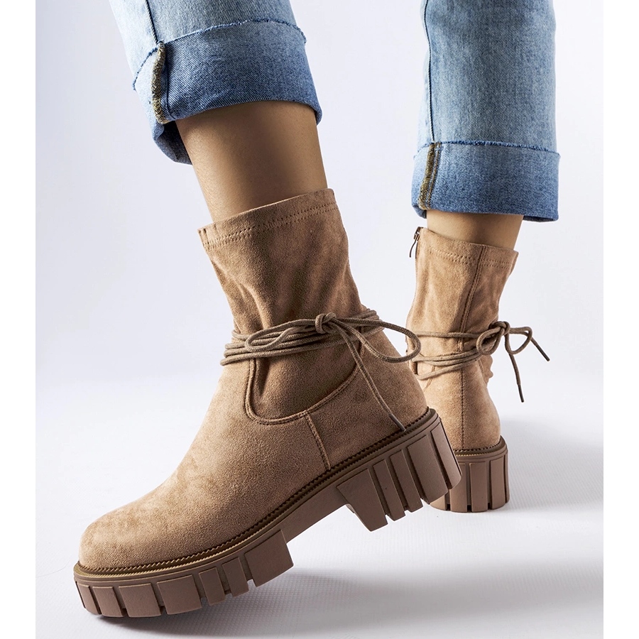 Cizmele au o talpă bej din cauciuc, care asigură durabilitate ridicată și rezistență la abraziune. Inserția este realizată din material moale, ceea ce asigură confortul la purtare. Materialul exterior este piele ecologica de piele intoarsa cu o calitate care imita pielea reala.