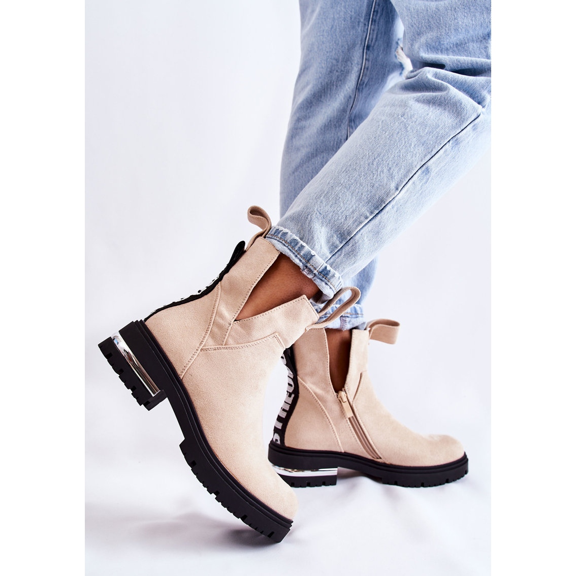 Oferita pe toc plat cu platforma joasa, lungimea talpii este de 2,5 cm, ceea ce asigura stabilitate si confort in timpul mersului. Vă rugăm să rețineți că mărimile sunt supradimensionate, așa că vă recomandăm să alegeți o dimensiune mai mică. Cizmele au vârful rotunjit și ajung până la gleznă, ceea ce permite o varietate de stiluri - de la casual la mai elegant.