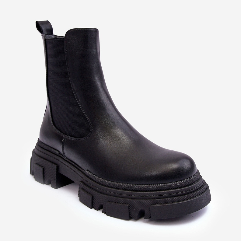 PS1 PS1 Botine chelsea din piele Solita negre cu tocuri plate și platformă negru
