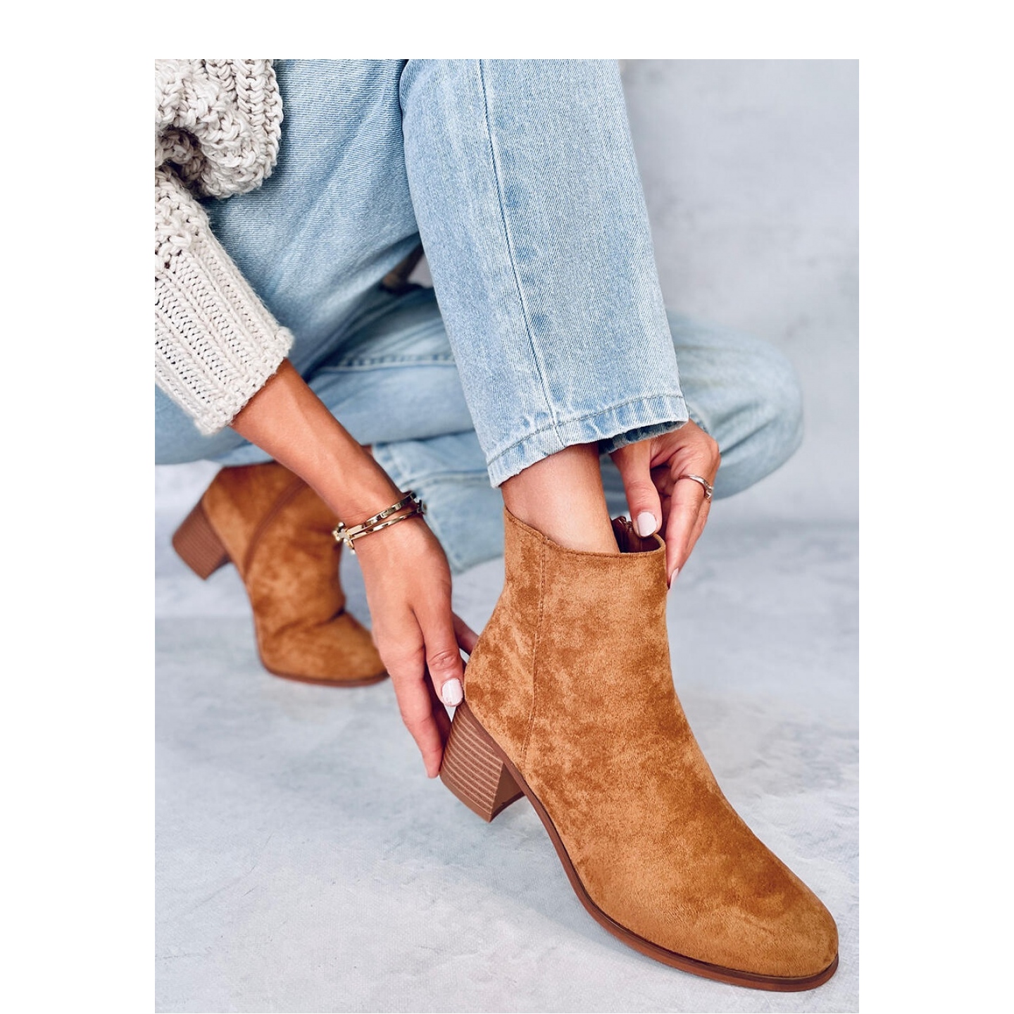 Va prezentam botine cu toc in piele intoarsa Camel de culoare maro - combinatia perfecta de stil, confort si functionalitate. Acest model clasic cu toc lat de 5,5 cm inalt va atrage cu siguranta orice iubitor de incaltaminte eleganta.