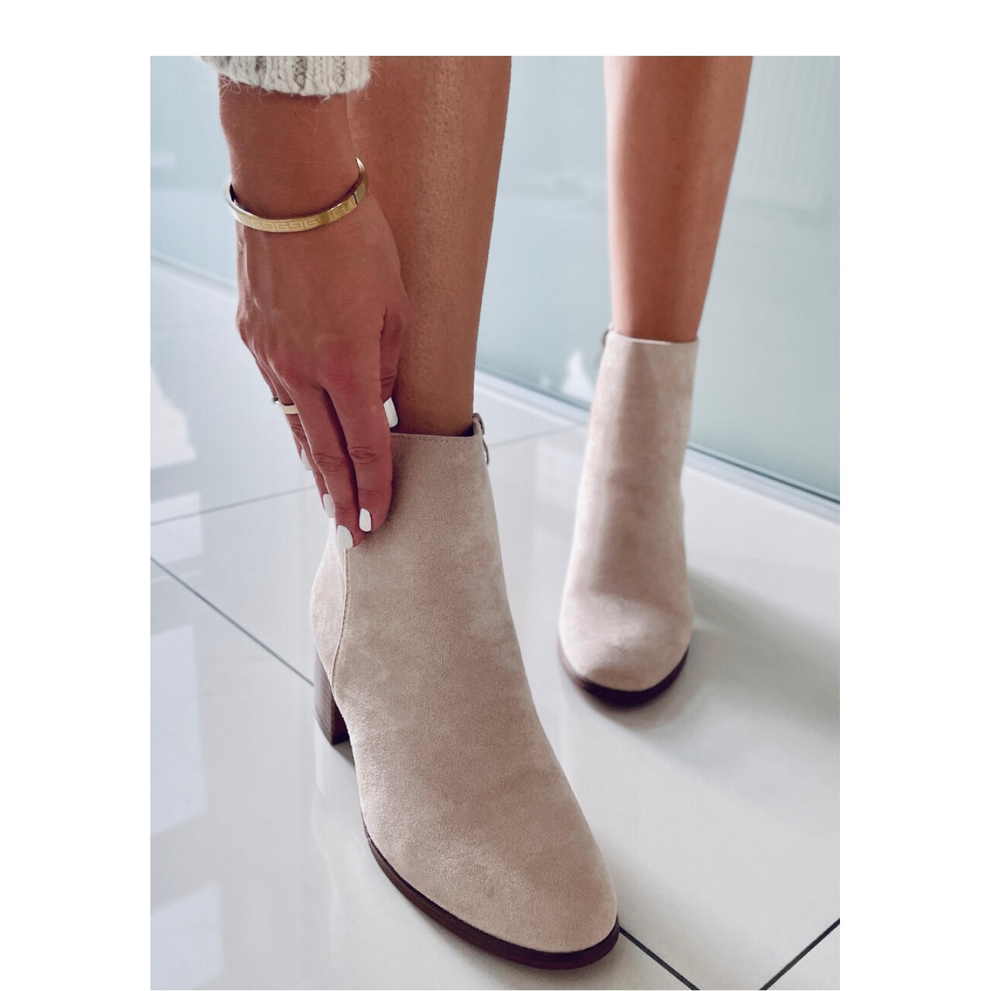 Detalii: Botine clasice de piele intoarsa bej