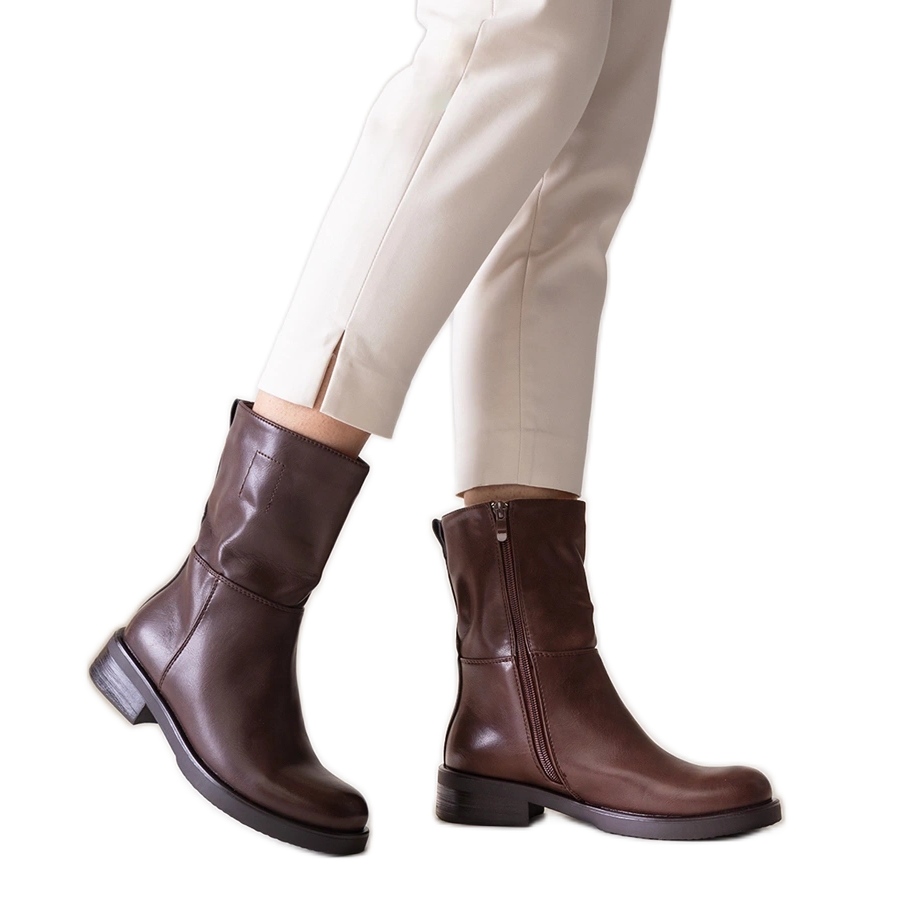 Datorită talpei de cauciuc, cizmele oferă o aderență și stabilitate excelentă, ceea ce le face un însoțitor ideal pentru diverse condiții meteorologice. Interiorul cizmelor este izolat, ceea ce garantează confortul termic chiar și în cele mai reci zile. Electul de fixare cu fermoar face mai ușor să se pună și să decoleze, iar culoarea lor maro clasică merge perfect cu orice stilizare.