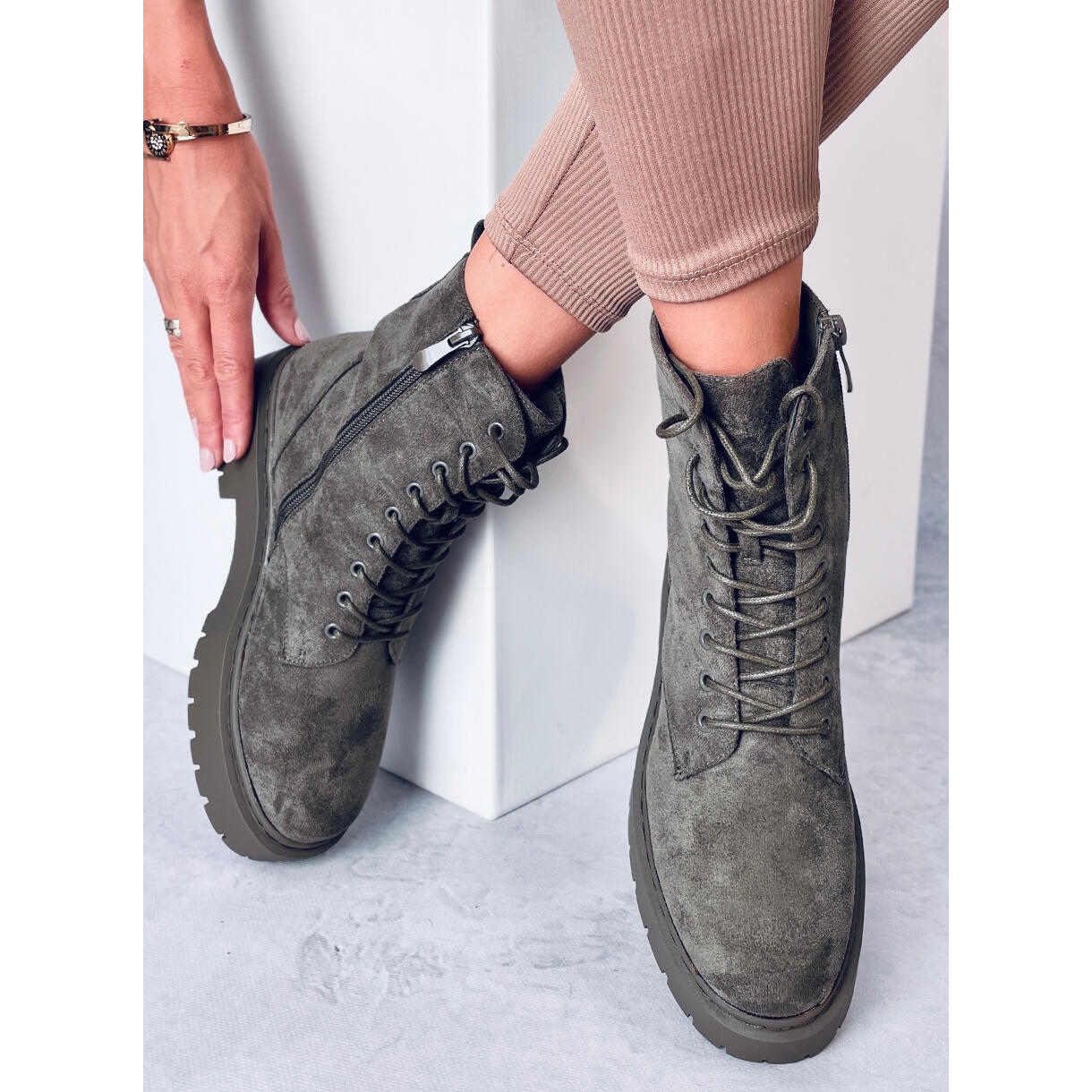 Burse Green sunt cizme de lucru cu șireturi pentru femei. Un model la modă pe o platformă care adaugă câțiva centimetri în plus de înălțime. Sunt destinate stilului de îmbrăcăminte de zi cu zi, realizate din piele de căprioară ecologică. Interiorul este căptușit cu blană caldă și delicată, care oferă căldură suplimentară în zilele mai reci. Pantofii sunt echipati cu fermoar practic pe lateral.