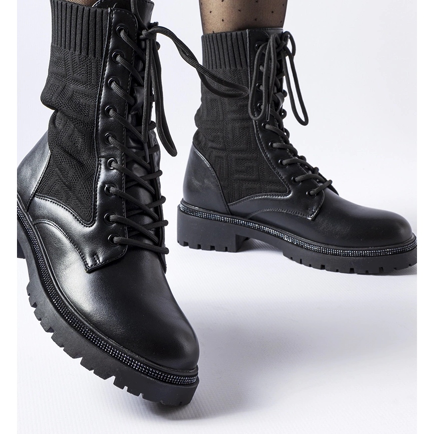 Cizme cu șosete negre cu zirconii Emanuele - stil și confort zilnic