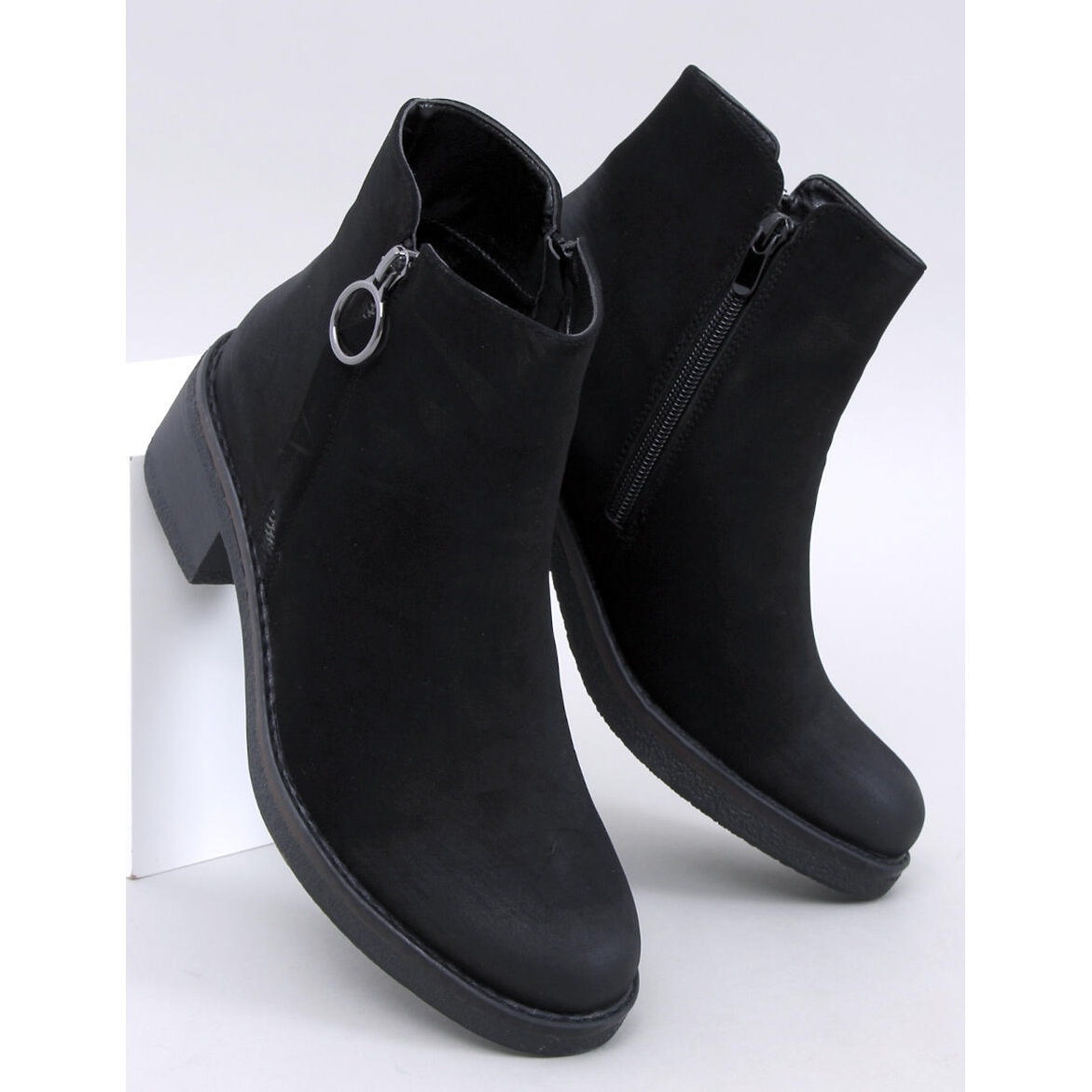 Cizmele sunt echipate cu un element de fixare practic cu fermoar pe partea superioară a superiorului, ceea ce face mai ușor să se pună și să decoleze. Un avantaj suplimentar este fermoarul decorativ, care le oferă un personaj unic. Fabricate din nubuck ecologic, acestea combină designul cu atenția asupra mediului. Interiorul cizmelor este căptușit cu blană delicată, ceea ce face ca picioarele să păstreze căldura chiar și în zilele mai răcoroase.