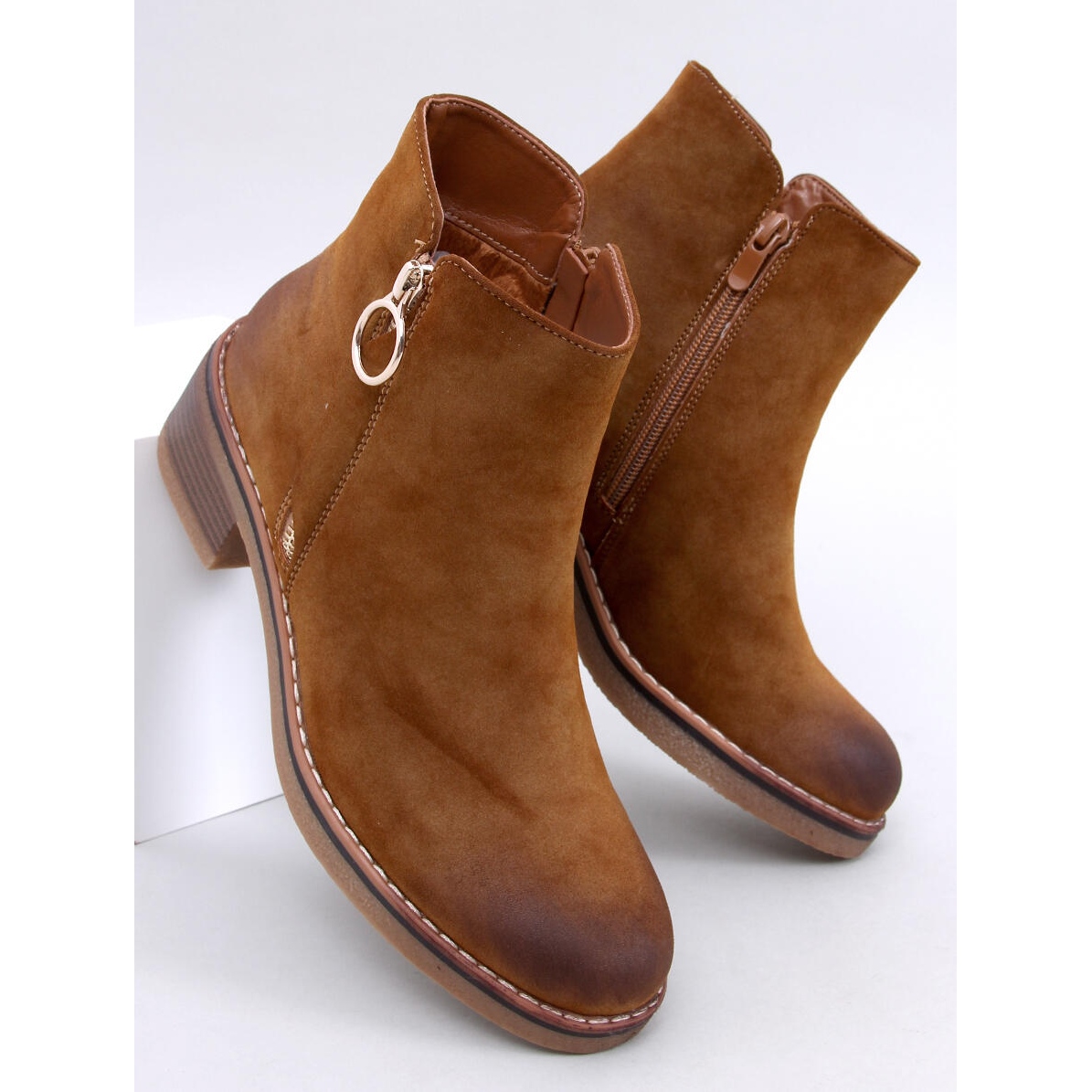 Inna marka Botine cu toc jos din nubuck Levere Camel maro