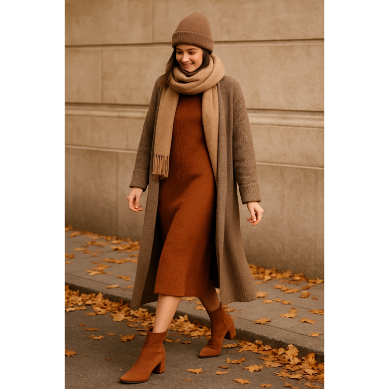 Rochiile pulover de toamnă sunt o altă piesă vestimentară care arată fenomenal cu botine cu degete pătrate. Alegeți un model mai liber într-o nuanță de maro ghimbir sau muștar. Pune-ți dresuri groase de culoarea cărnii sau o nuanță care se potrivește cu rochia. Adaugă botine plate sau cu toc jos. Completați aspectul cu un cardigan lung și o pălărie într-o culoare asortată. Această ținută nu este doar confortabilă, ci și extrem de stilată și în acord cu tendințele de toamnă.