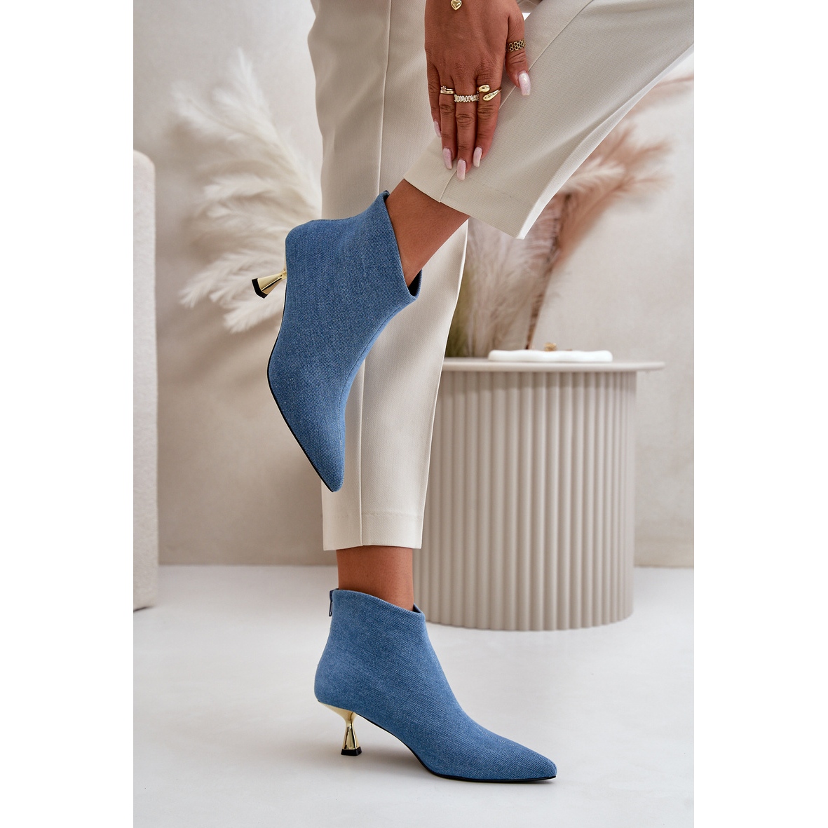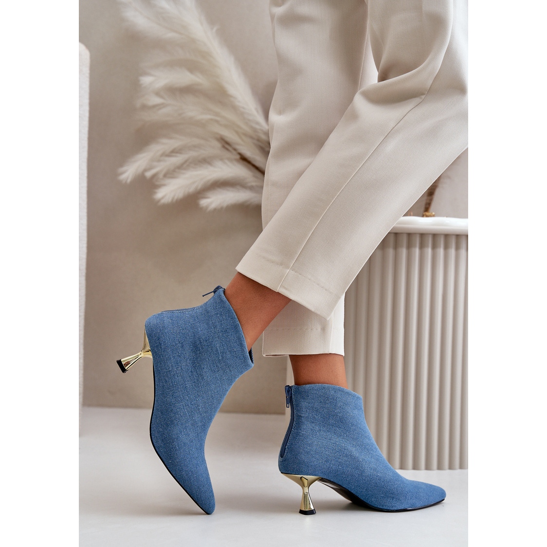 - Model: Botine de damă din denim cu toc înalt