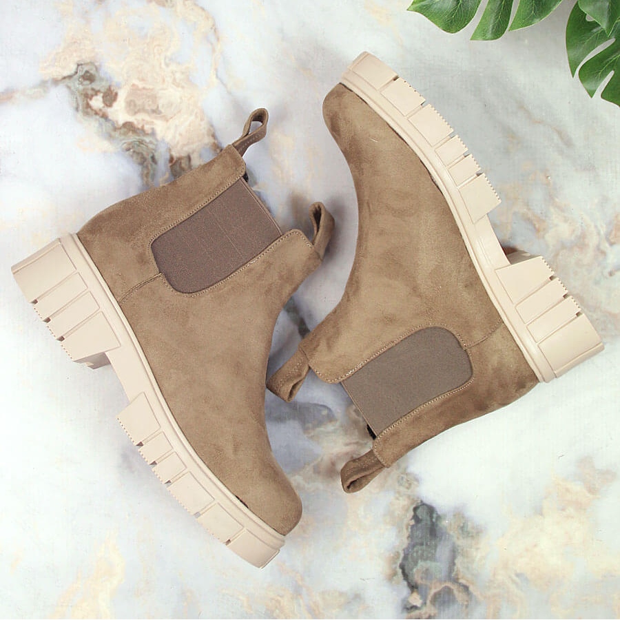 Cizmele Chelsea de dama de piele intoarsa bej pe platforma, izolate, de la marca T.Sokolski sunt alegerea perfecta pentru femeile care pretuiesc atat confortul cat si aspectul la moda. Acești pantofi eleganți combină funcționalitatea și designul modern, ceea ce îi face o completare perfectă pentru orice stil de toamnă și iarnă.