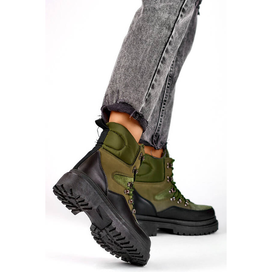 Inna marka Botine de damă bej și negre cu șireturi A-852GR negru