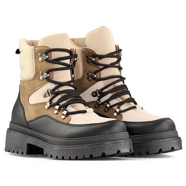 Detalii: Botine de damă bej și negre cu șireturi A-852KH