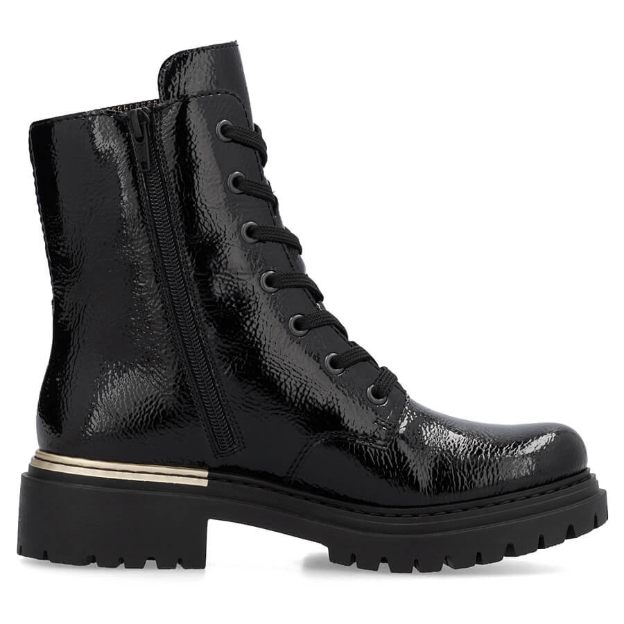 Modelele Rieker sunt cunoscute pentru confortul lor, făcându-le perfecte pentru utilizarea de zi cu zi. Confort suplimentar este oferit de un toc bloc scăzut, dar stabil de 4,5 cm, ceea ce le face o alegere excelentă pentru plimbări lungi. Finisajul lacuit adauga originalitate, iar culoarea clasica neagra le face sa se potriveasca cu orice stil - de la casual la mai elegant.