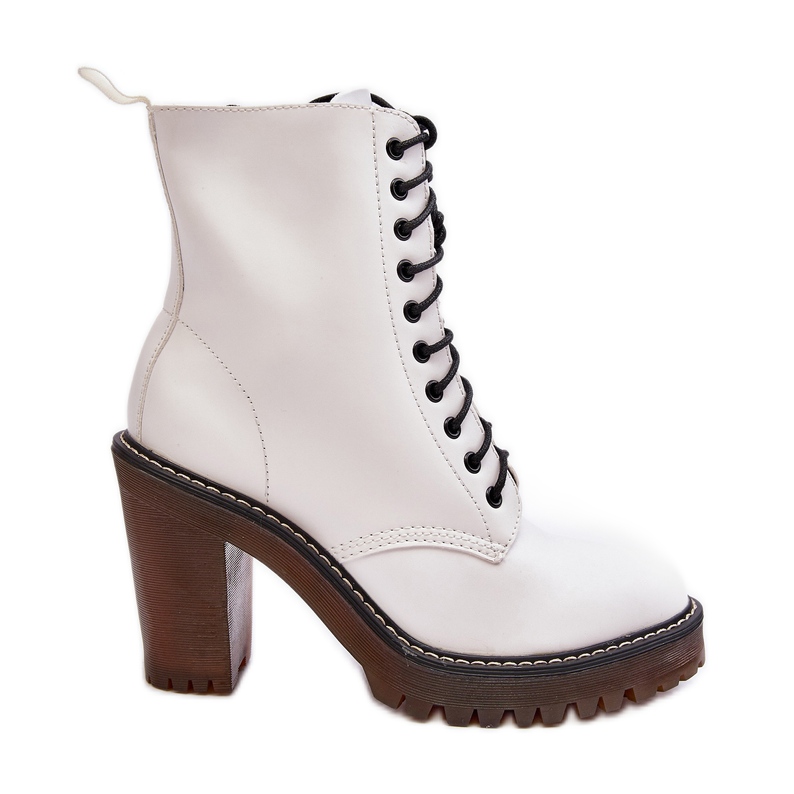 Cizmele Arove elegante și confortabile sunt o propunere pentru sezonul de toamnă/iarnă pentru femeile care apreciază stilul și confortul. Fabricat din piele ecologică de înaltă calitate în alb clasic cu accente negre subtile, așezate pe un tip de călcâi stabil (10 cm). Modelul ajunge la gleznă, este fixat cu un fermoar practic pe lateral, iar dantela îi conferă caracter și facilitează potrivirea.