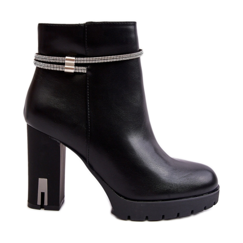 Detalii: Botine de dama cu toc inalt cu decor Negru