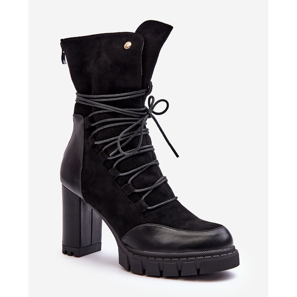 Detalii: Botine de damă cu toc înalt cu șireturi negru Artie