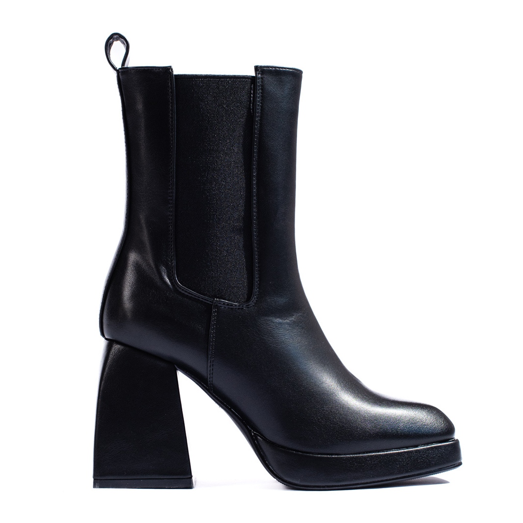 Cizmele Chelsea de dama cu toc lat, negru „Shelovet”, sunt chintesența stilului, confortului și eleganței atemporale. Aceste cizme sunt concepute pentru femeile care apreciază confortul și designul la modă. Forma lor simplă, dar elegantă, le face să se potrivească cu aproape orice tip de ținută, de la blugi casual până la rochii elegante.