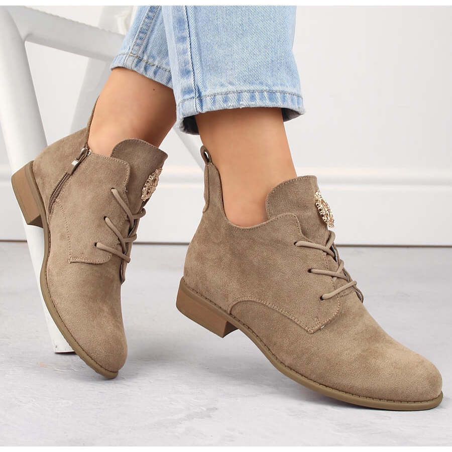 Jezzi Botine de damă din piele intoarsa bej cu toc joase Jezzi ASA142-54