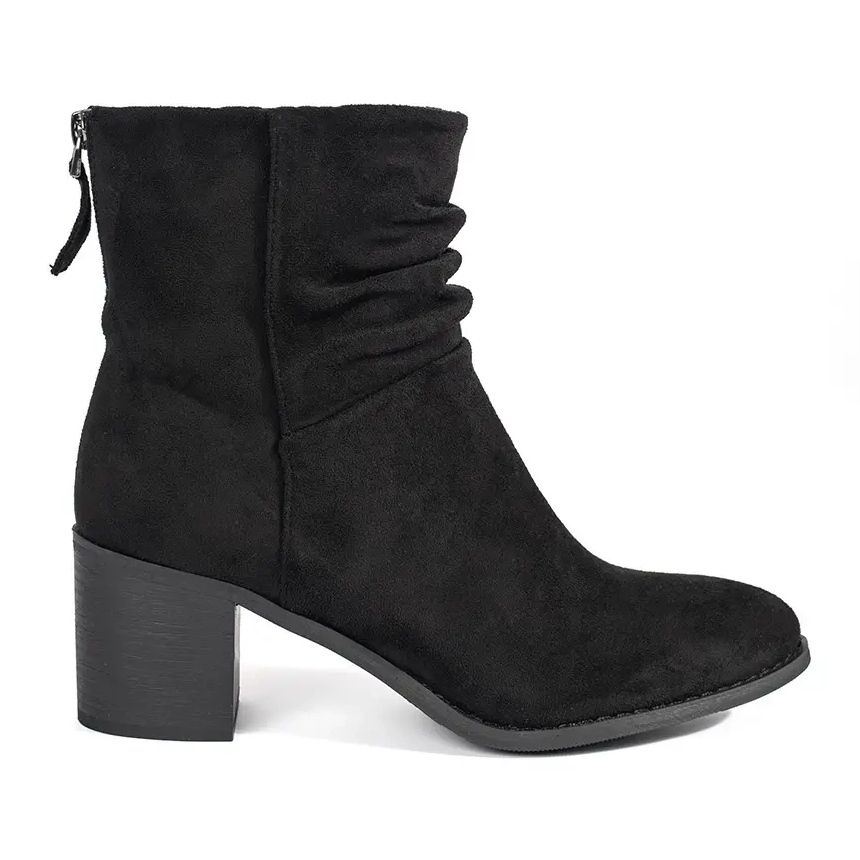 Inna marka Botine de dama din piele intoarsa neagra cu partea superioara cu volane negru