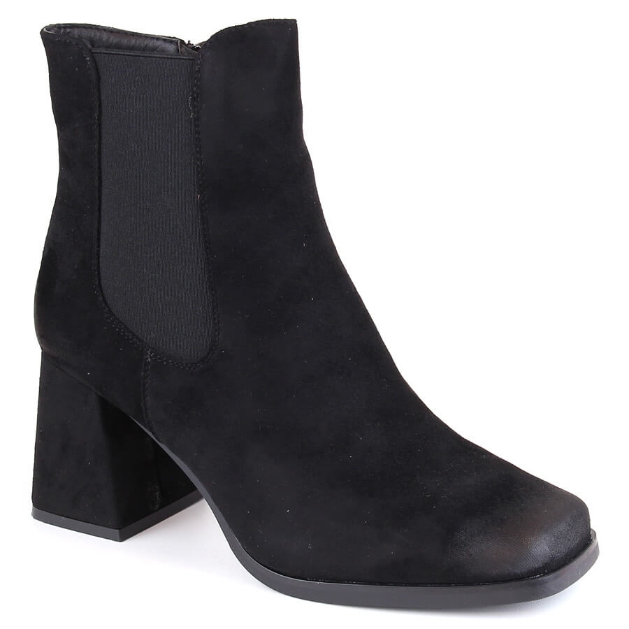 Detalii: Botine de damă din piele intoartă cu toc înalt decorativ, Potocki negre SZ12183 negru