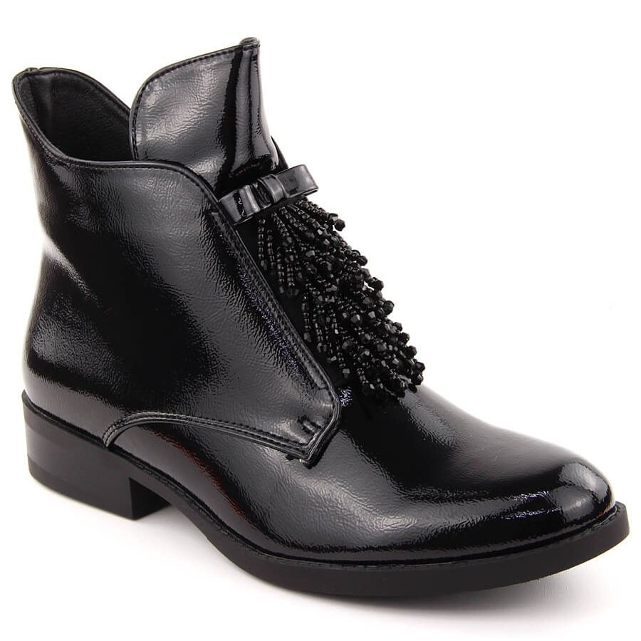 Detalii: Botine de dama din piele lacuita cu margele, neagra S.Barski negru