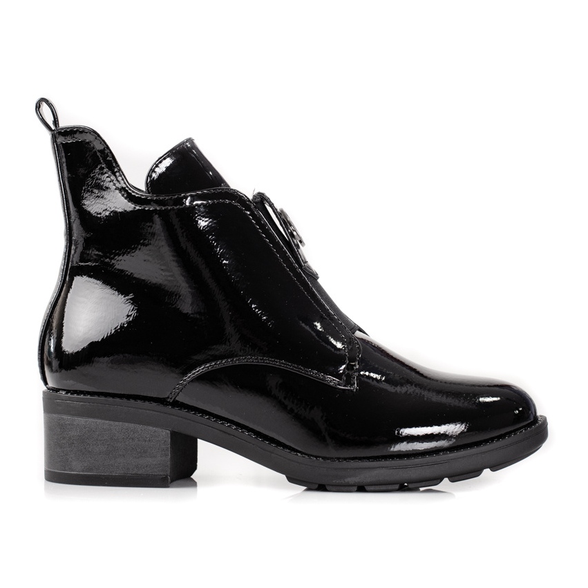Detalii: Botine de dama din piele lacuita cu toc plat negru