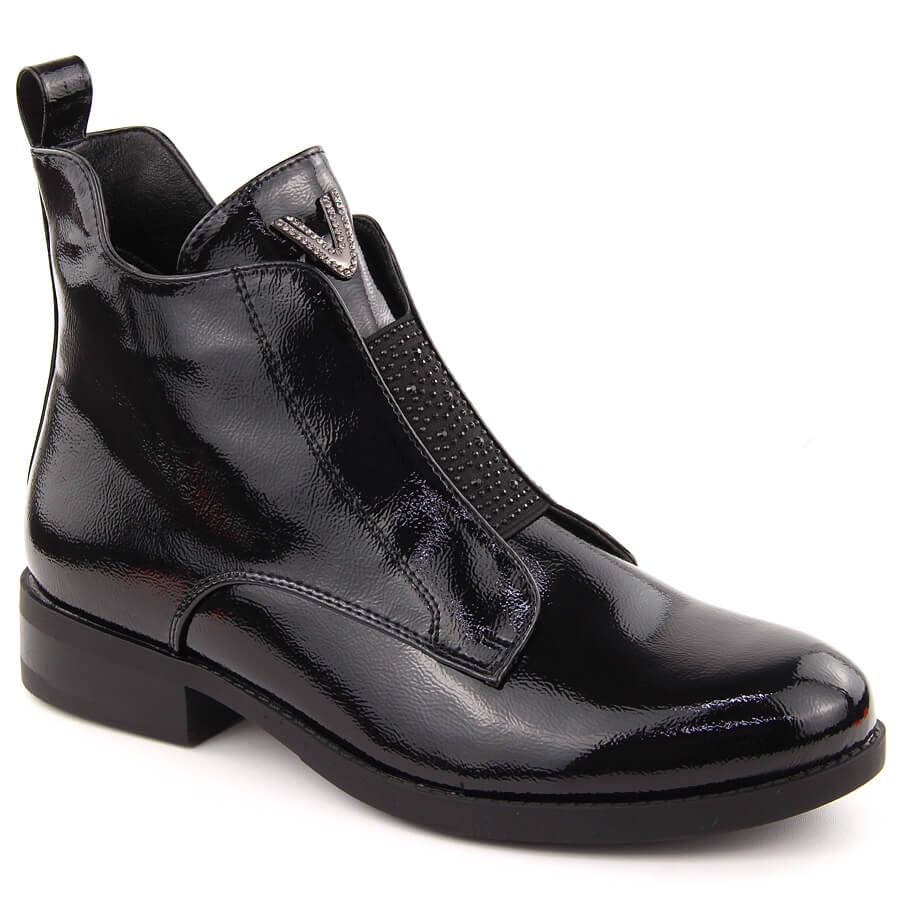 Detalii: Botine de dama din piele lacuita cu zirconii negre de la S.Barski negru