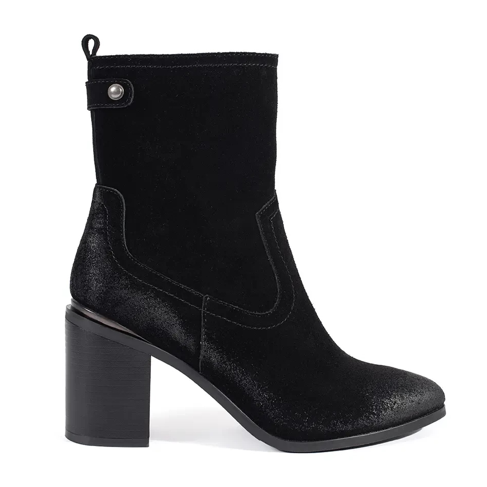 Fabricate din piele de căprioară naturală de înaltă calitate, cizmele se vor uita cu siguranță la culorile lor clasice negre. Construit - călcâiul și un nas rotund fac ca acești pantofi să nu fie doar eleganți, ci și practice și universale - ideale atât pentru stilizări de zi cu zi, cât și pentru ocazii speciale.