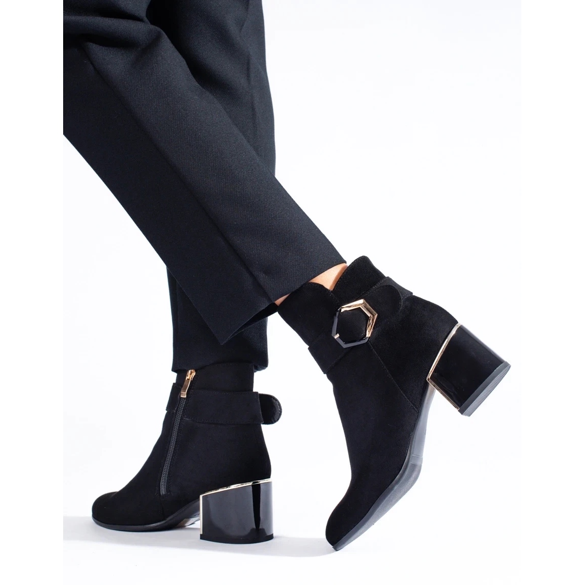 Detalii: Botine de dama elegante cu toc joase din piele intoarsa ecologica negru