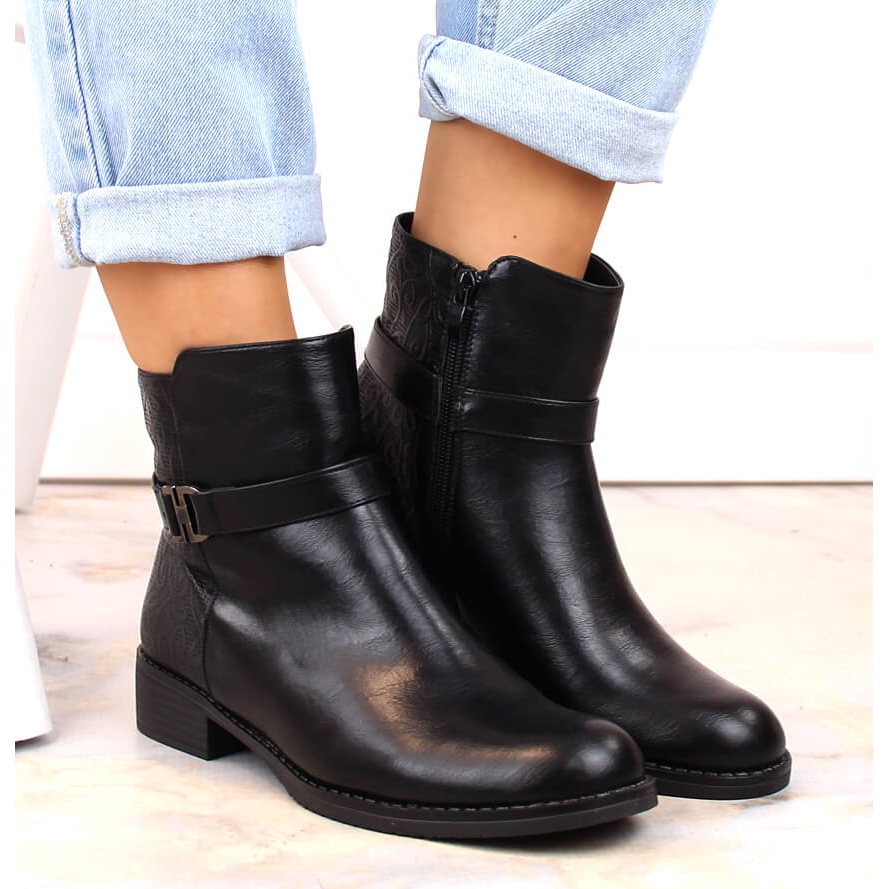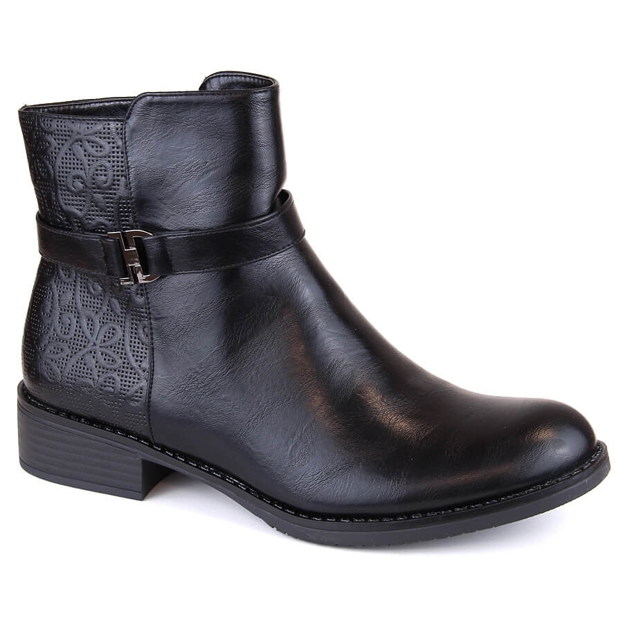 Detalii: M. DASZYŃSKI Botine de damă izolate negre cu toc plat M.Daszyński negru
