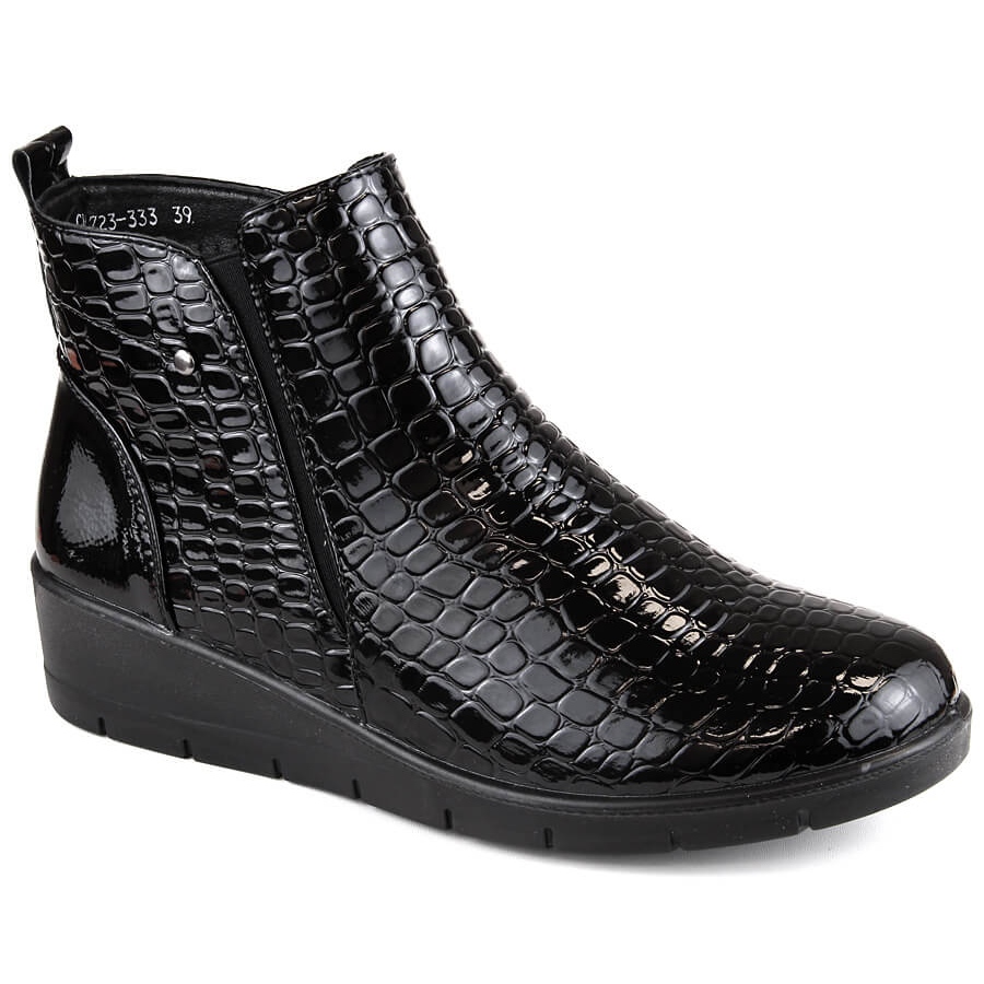 T.Sokolski Botine de damă lacuite negre, cu pană în picioare, T.Sokolski Z23-333 negru