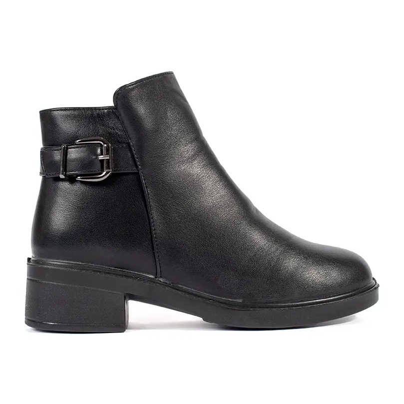 Detalii: Botine de damă negre cu toc joasă, cu cataramă decorativă negru