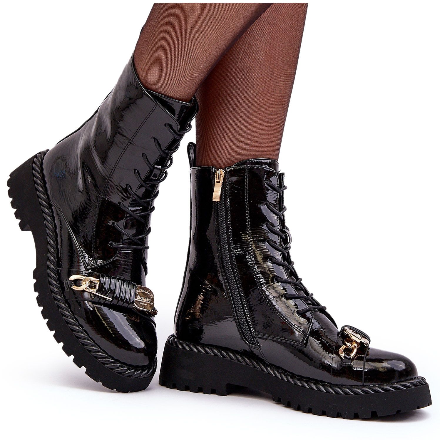 Detalii: Botine De Dama Patent Worker Cu Decoratie Neagra S.Barski MR870-67 negru