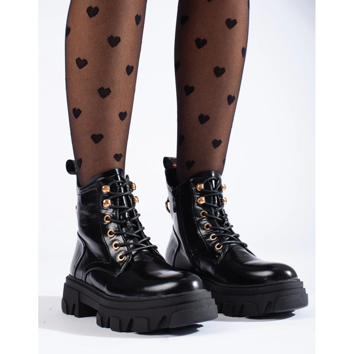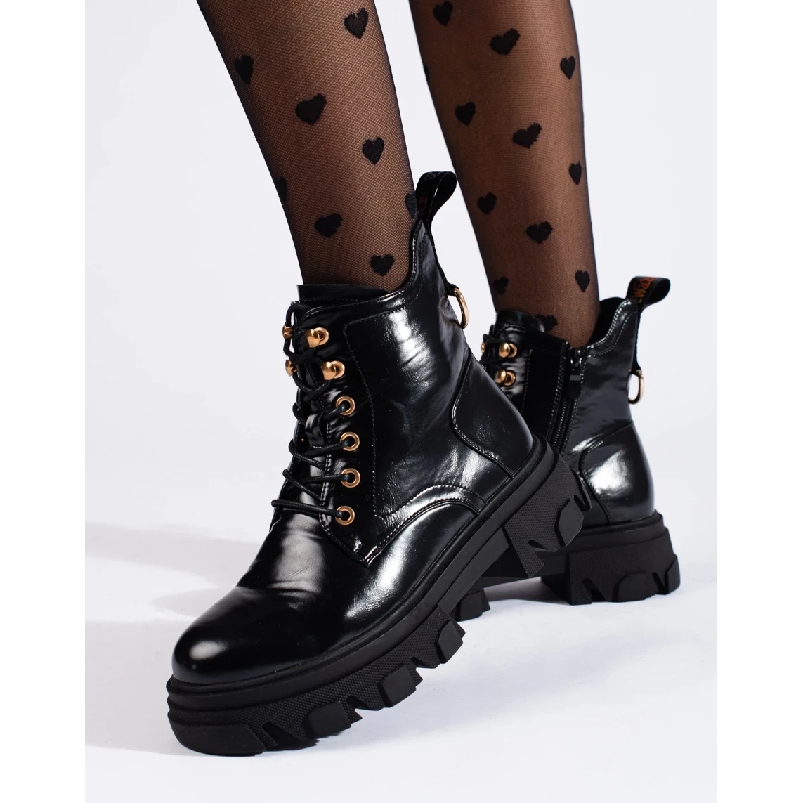 Detalii: Botine de dama patentate cu talpa groasa negru