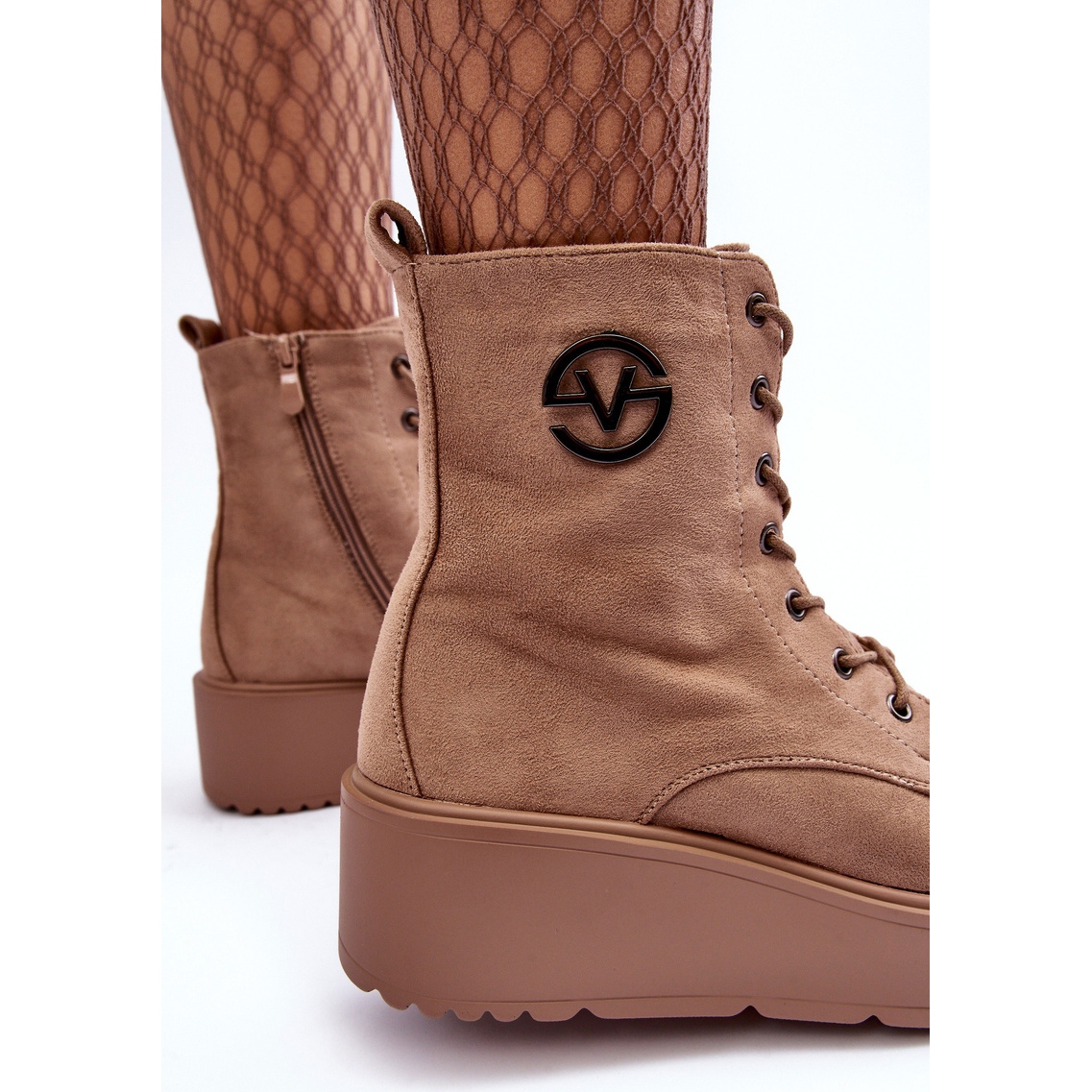 Vinceza Suede Boots lucrători pe o platformă masivă - Lavica (bej)