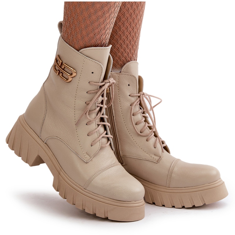 Detalii: Botine de muncitor din piele izolate Zazoo 60486 cu detalii aurii bej deschis