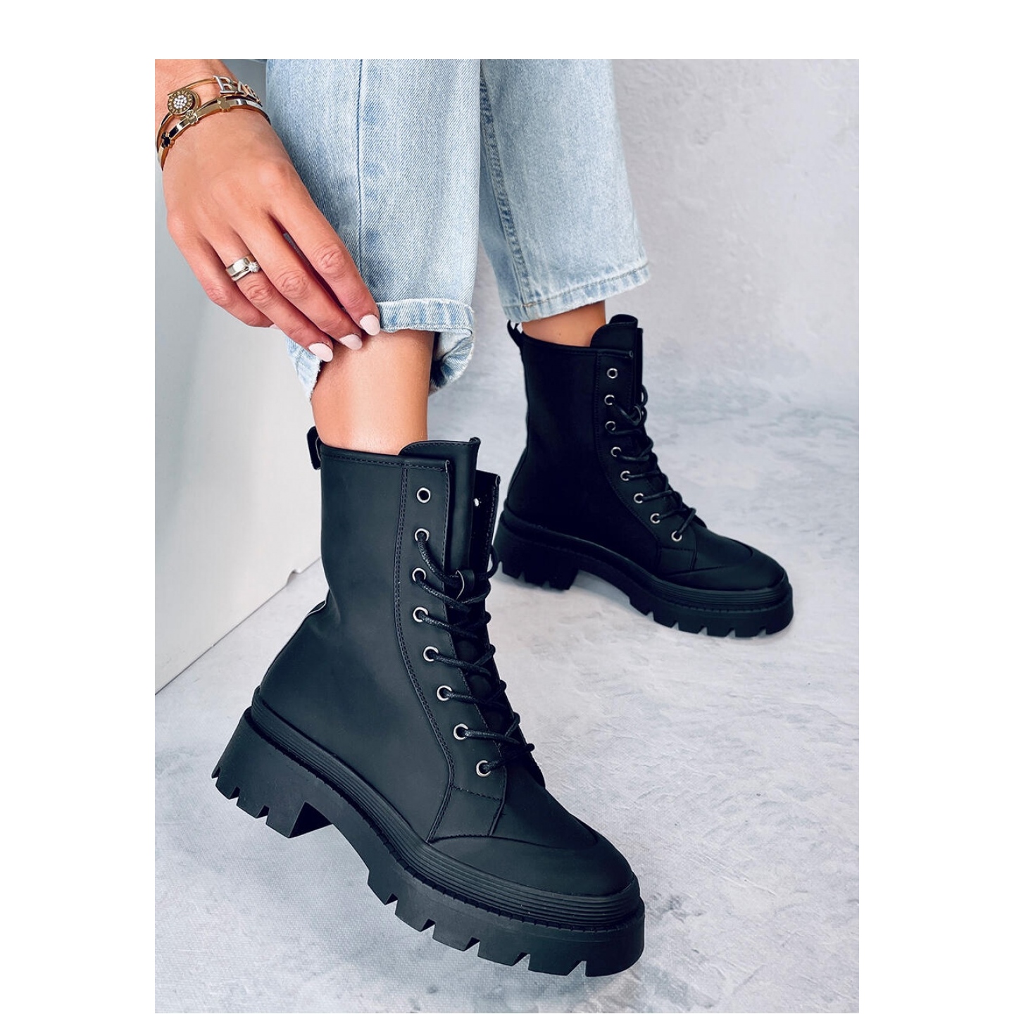 Botine de damă cu șireturi? muncitori. Model dantelat clasic, astfel încât să poată fi ajustate perfect la lățimea piciorului. Dacă prețuiești confortul și minimalismul, acești pantofi sunt făcuți pentru tine :) Sunt din piele ecologică cu un finisaj mat atrăgător. Costum interior - căptușeală din spumă. Notă: modelul este recomandat persoanelor cu picioare subțiri.
