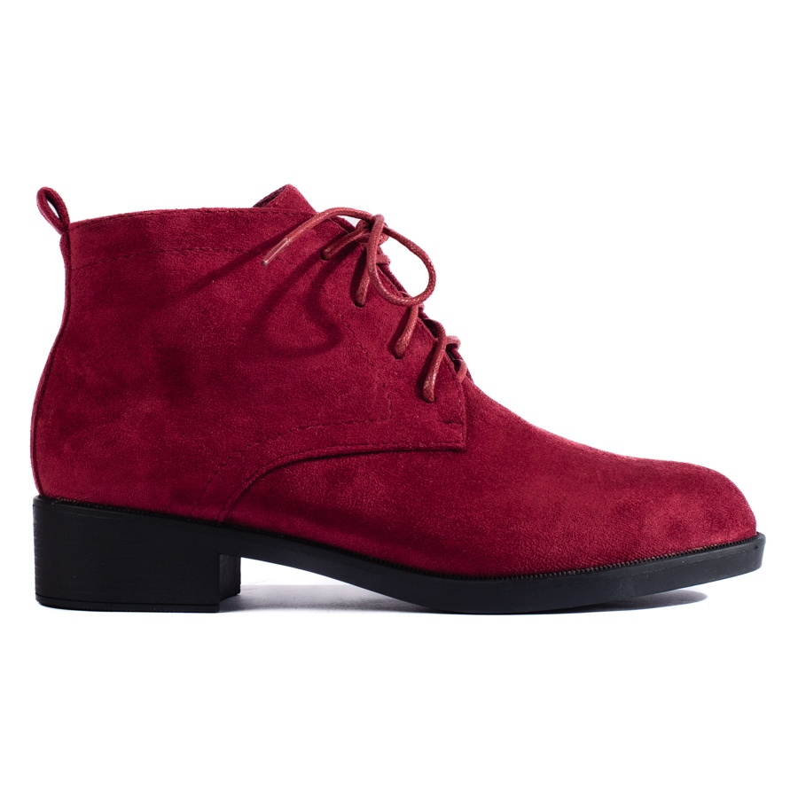 Detalii: Botine de piele de căprioară visiniu cu șireturi Shelovet roșu