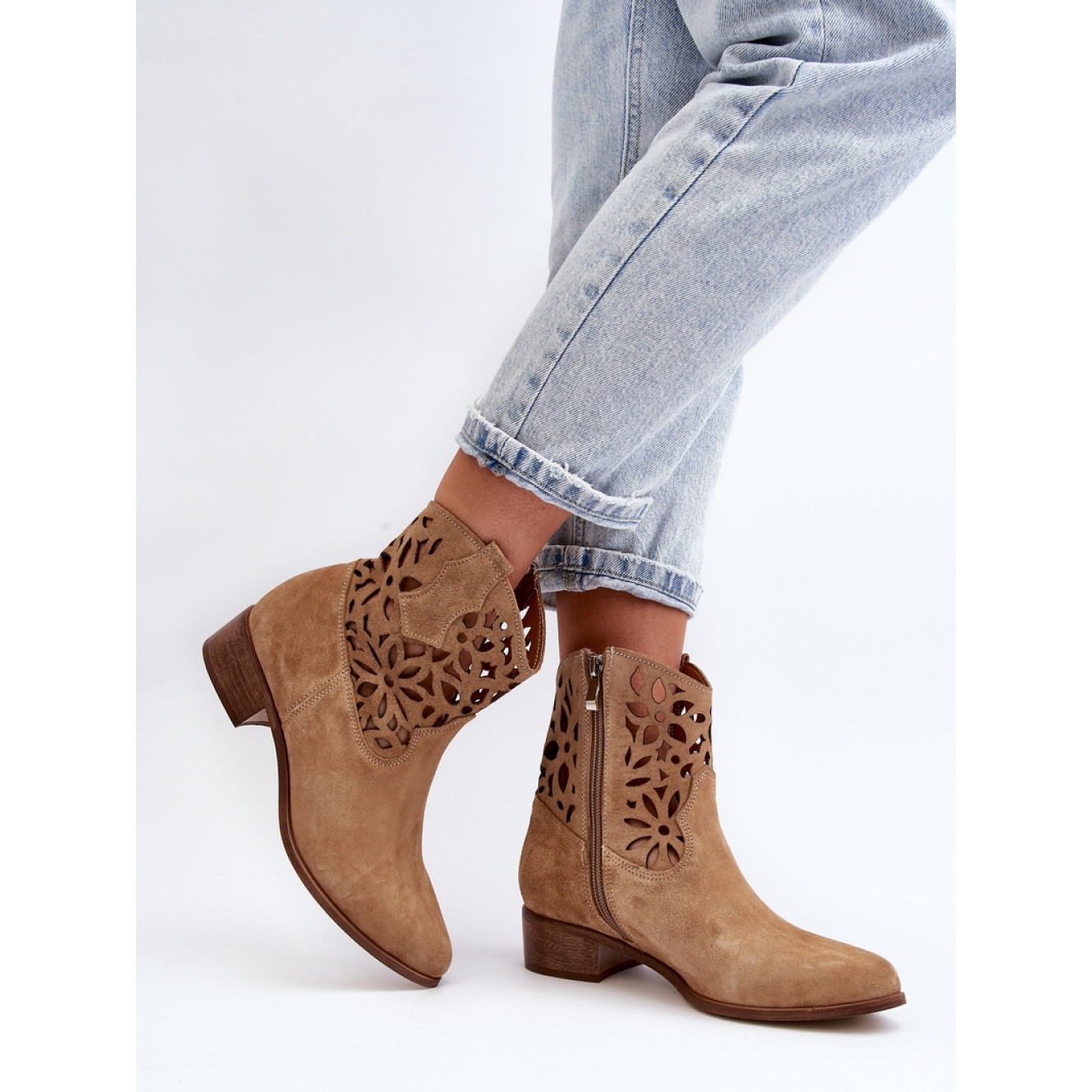Zazoo Botine de piele intoarsa ajurata Zazoo 3404 bej