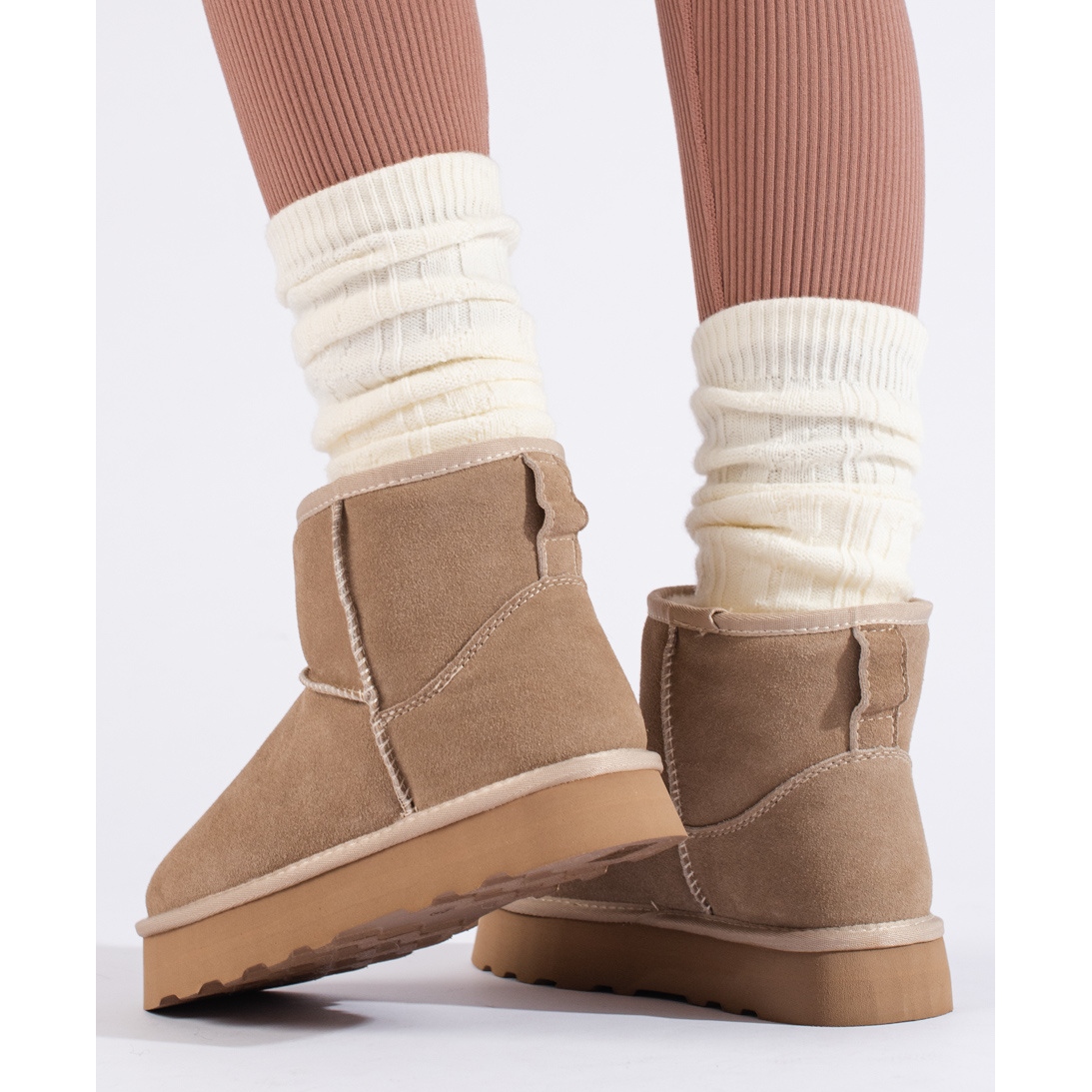 - Model: Botine de piele intoarsa bej cu blana