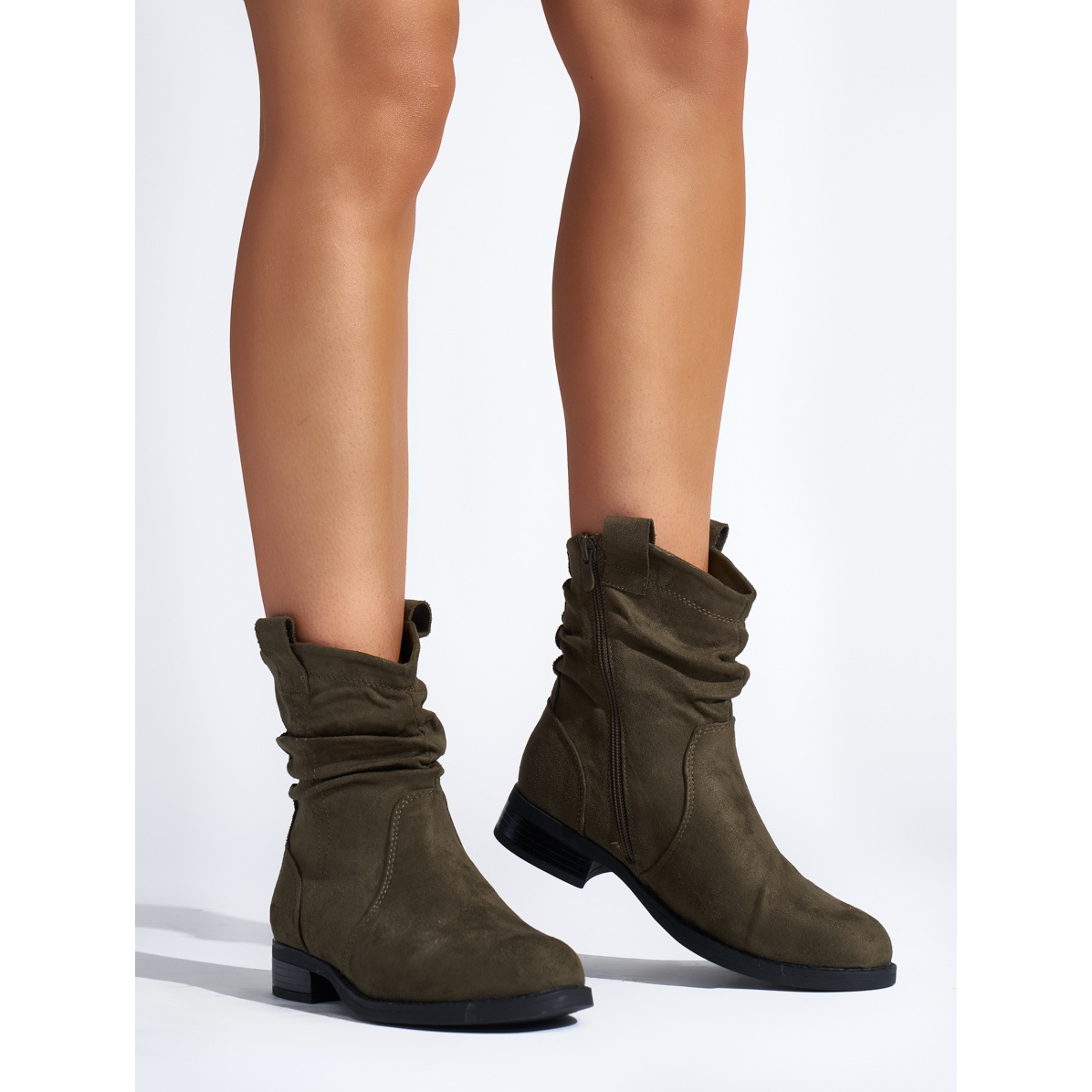 Inna marka Botine de piele intoarsa cu volane de culoare verde inchis