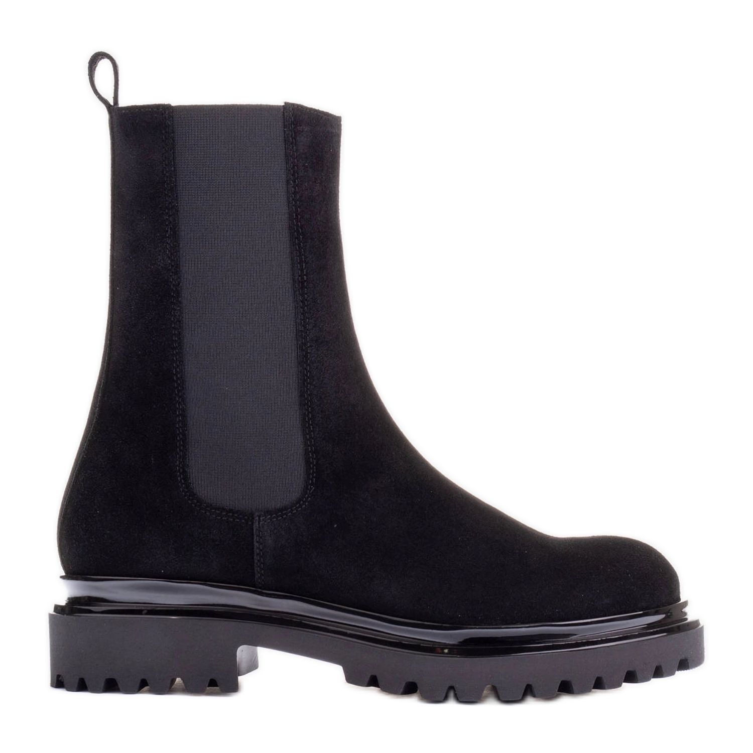 Pantofi Marco - cizme Jodhpur din piele de căprioară neagră