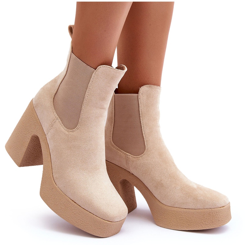 Detalii: Botine din piele intoarsa pe un toc inalt masiv Sunilda bej