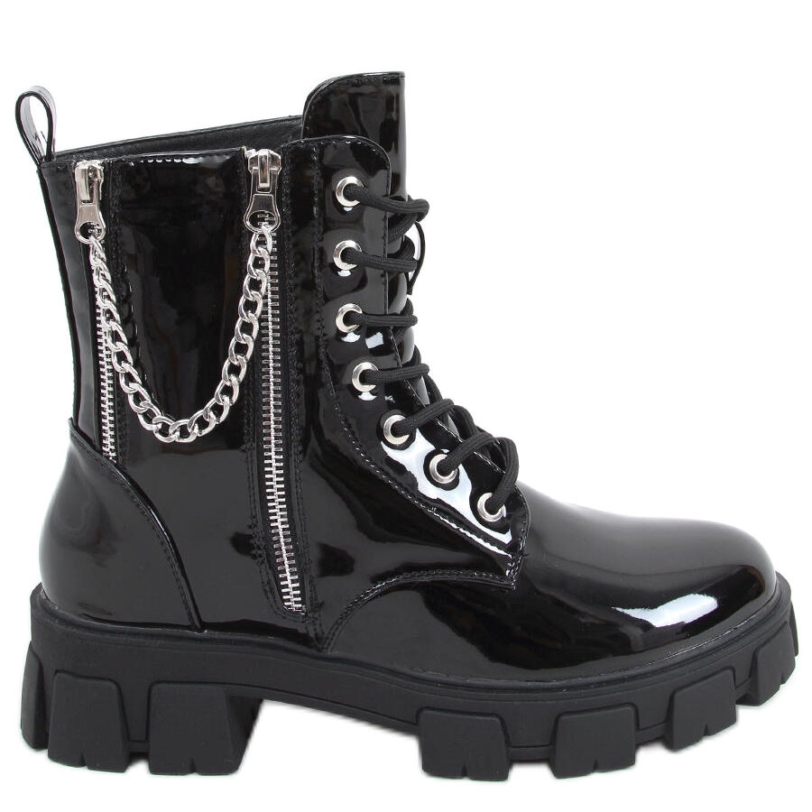 Descopera o noua dimensiune a modei cu botinele lacuite Mina Black cu lant! Aceste cizme de muncitori negre unice cu talpa groasa sunt un must-have in garderoba oricarei femei. Finisajul lor lăcuit nu numai că atrage atenția, dar adaugă și caracter oricărui stil.