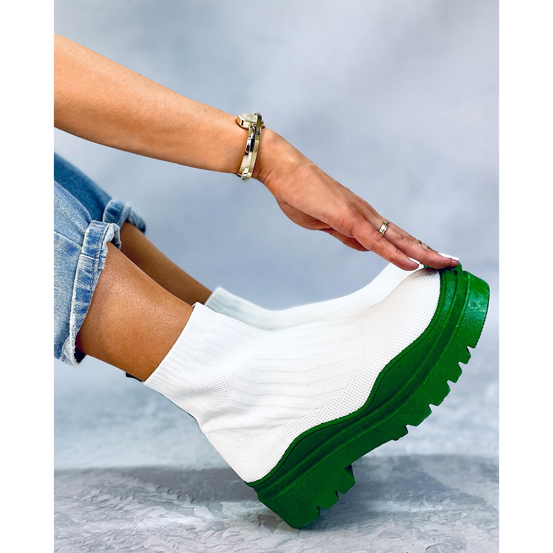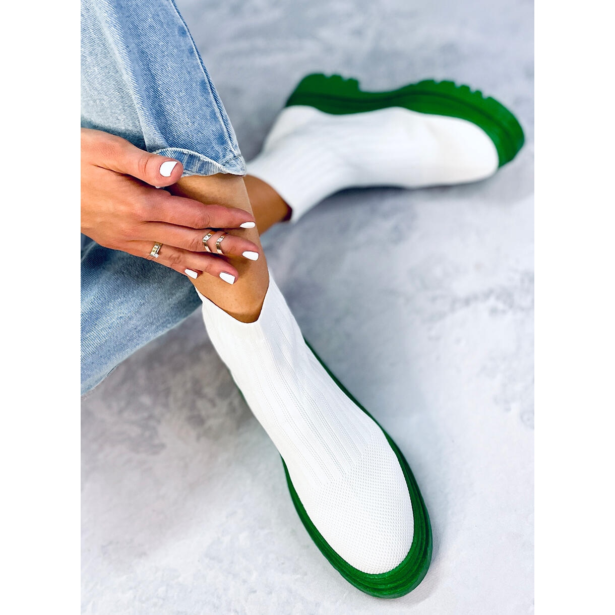 Cizmele se caracterizează printr-un toc plat și un vârf rotund, ceea ce le face o alegere ideală pentru utilizarea de zi cu zi. Un model simplu, neted, într-o culoare albă clasică, însuflețește orice stil, iar accentele verzi adaugă prospețime și originalitate. Datorită închiderii cu slip-on, acestea nu sunt doar ușor de îmbrăcat, ci și perfecte pentru viața aglomerată a orașului.