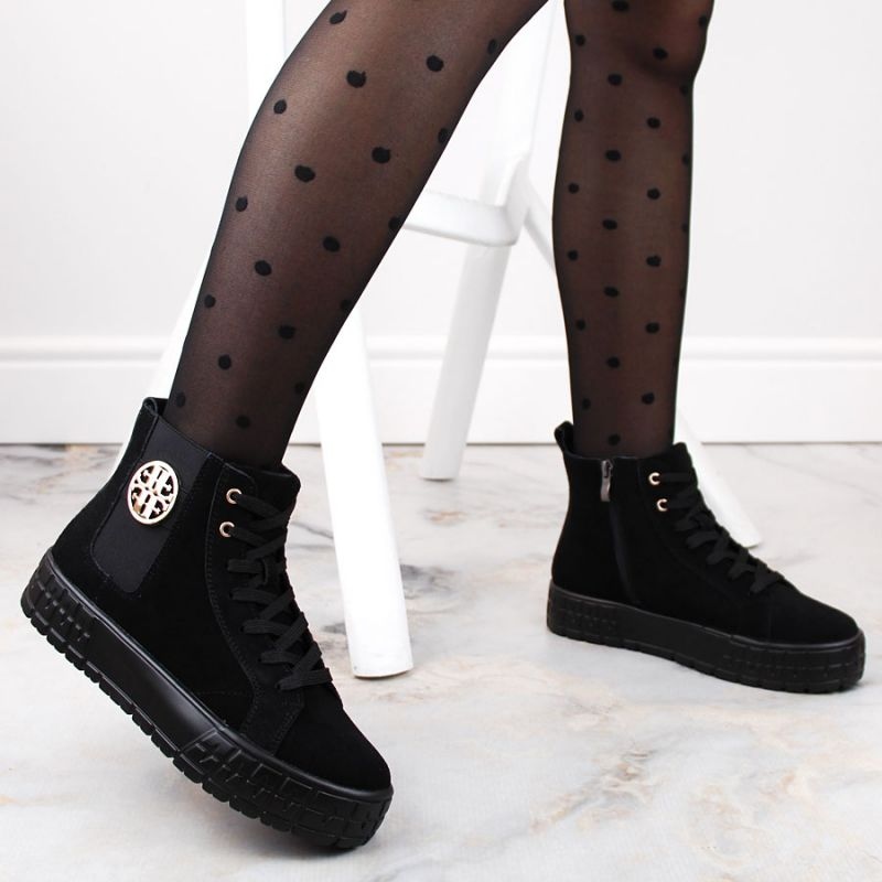Botine Filippo W PAW470 din piele intoarsa neagra izolata pe platforma