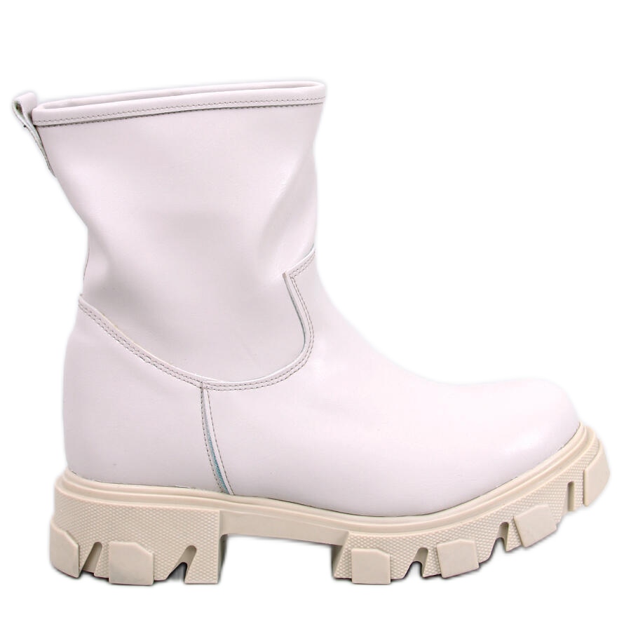 Cizmele elegante pentru femei Granturi bej sunt o propunere pentru iubitorii de aspect urban, oarecum militar. Un simplu superior care ajunge la gleznă și un nas rotund creează o formă clasică, universală, pe care o puteți combina cu ușurință cu stilizări casual și mai expresive. Talpa groasă, de 4 cm oferă o izolație bună de la sol, stabilitate și comoditate în fiecare zi. Model alunecat, fără elemente de fixare - rapid și practic de utilizat.