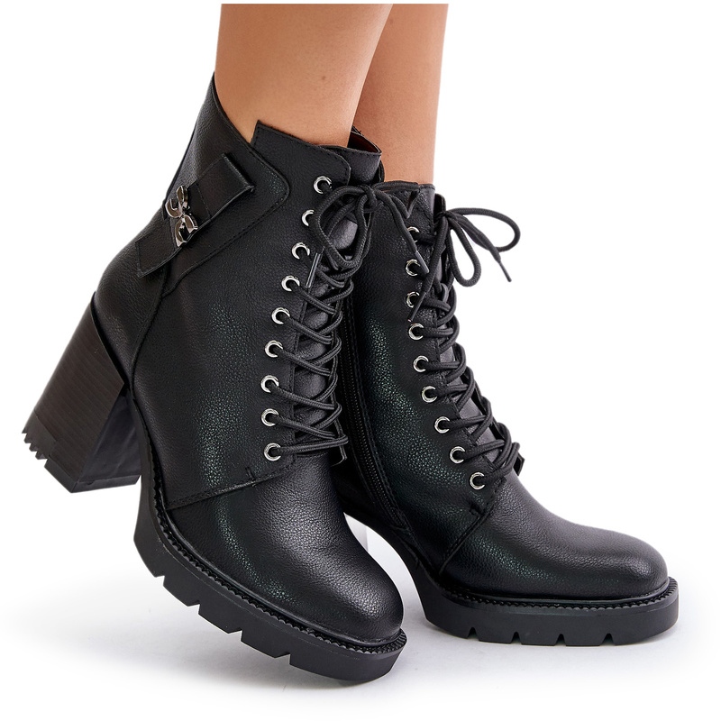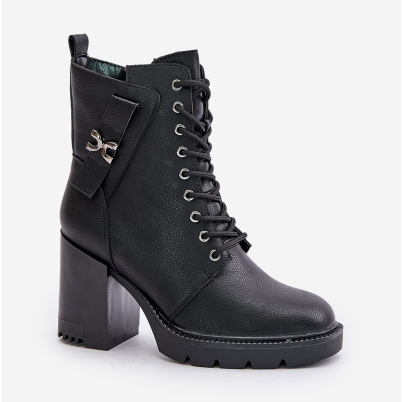 Botine izolate cu toc înalt Jezzi, cu detaliu auriu, negru - Eleganță și Confort într-unul!