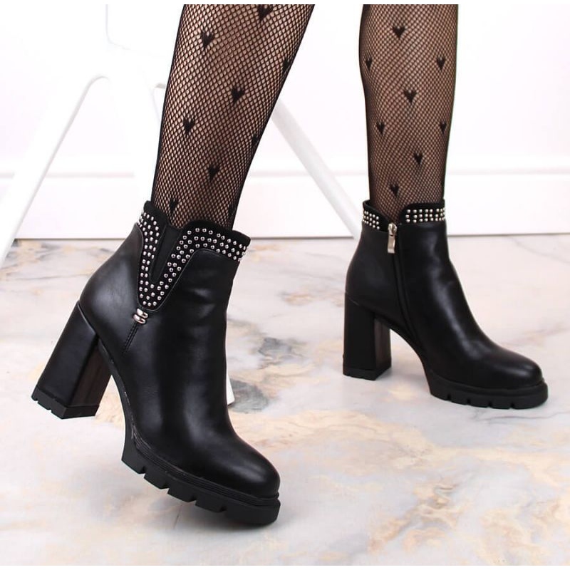 Detalii: Botine izolate cu toc inalt cu nituri, Filippo W PAW495, negre negru