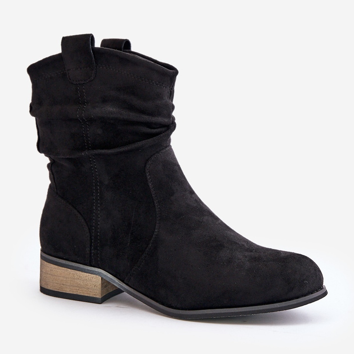Botinele izolate cu tocuri joase, negru, sunt alegerea perfecta pentru zilele mai reci. Realizate din piele intoarsa ecologica de inalta calitate, ofera nu doar un aspect elegant, ci si confort la purtare. Tocul bloc jos, înalt de 4 cm, le face excepțional de confortabile, iar degetele rotunjite adaugă subtilitate.
