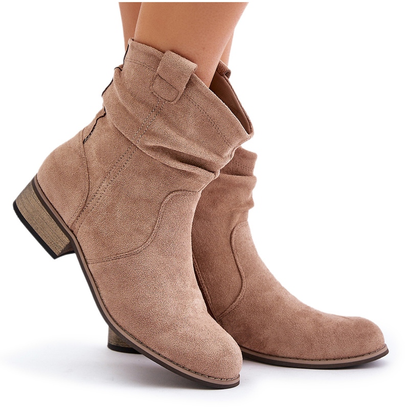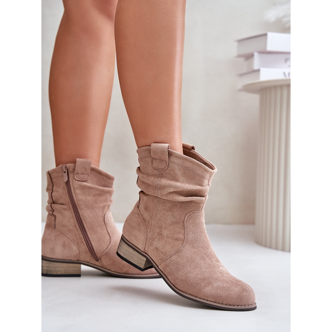 Alege stilul și confortul cu botine izolate bej cu tocuri joase rulate!